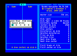 Чтобы запустить ROM-версию c диска, войдите в Теневой монитор. В меню "B. Save & load" выберите пункт "L. Load ..." и на запрос введите имя файла (например, [drv:]trdn761R), подтвердив клавишей Enter. Если пункт "A. Autostart" в положении ON, то программа сразу запустится. В диалоговом окне выберите устройство, которое следует прочитать.