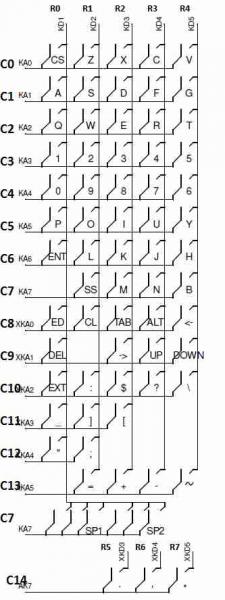 Тут про клавиатуру есть, но дело в том что дополнительные адресные линии нужны. Я стандартную спековскую о 40ка кнопках подключал. А для сипиэм там еще клавишы нужны.