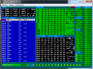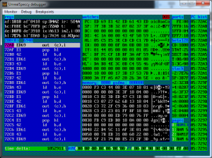Что касается скринов, то в первом как раз видно, что выполняется чтение из двух портов попеременно (то из D*256+C, то из E*256+C) с сохранением в память в (HL), это видимо старший и младший байты каждого читаемого с ШД IDE слова. И одно из этих чтений должно дергать строб чтения этого самого слова с IDE, только один байт сразу забирается, а другой защелкивается в промежуточном регистре и потом читается через второй порт. Номера портов не скажу, надо закапываться в схемы (а то еще и прошивки ?) СМУКа, но зато уже хоть видно, что не магия.
