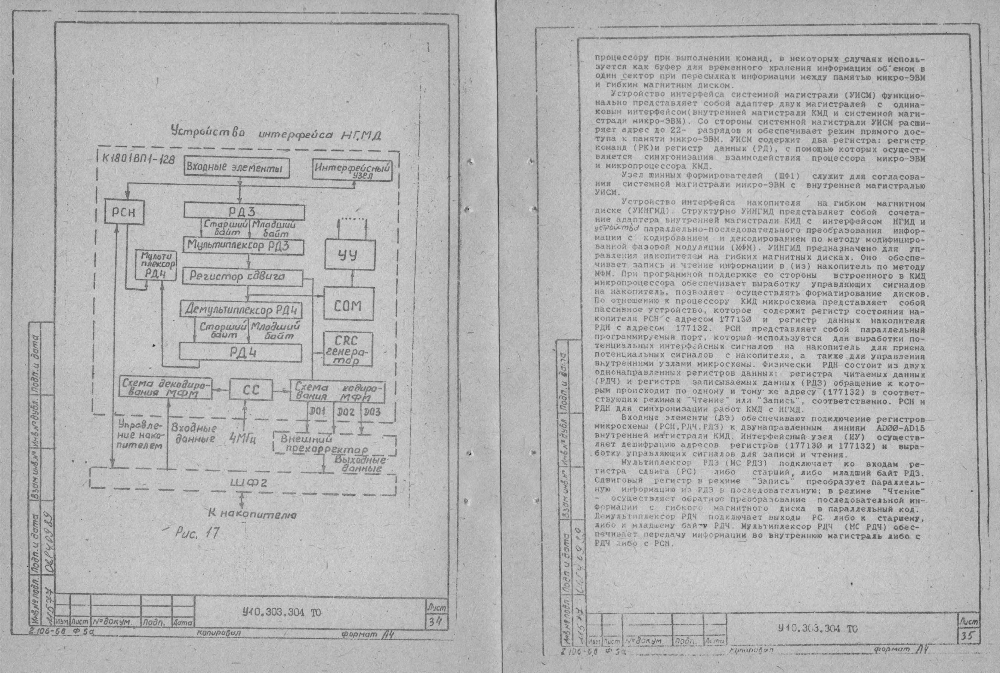 Далее проблема - чтобы прочесть эту "кашу", 1801ВП1-128 должен находится в режиме чтения данных, т.е. когда он аккуратно формирует каждые 64 мкс данные в своем регистре. После включения или сброса он переходит в режим поиска маркера, и находится в нем до тех пор, пока он этот маркер не найдет. Т.е. загрузились мы с жесткого диска, то сразу эту "кашу" не прочесть. Необходимо сперва прочесть дискету формата MFM, что бы был найден хотя бы один сектор, и 1801ВП1-128 перешла в режим чтения данных.