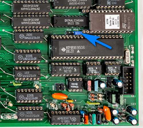Если на нем логический 0 (подвешено на землю) - замкнут R55, то контроллер стартует с программной из внешней памяти (РФ2/M2716)