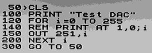 Написал программку генерации пилы с ЦАП (забыл уже за 30 лет как на васике что-то делается. пришлось книжку полистать, повспоминать. Спасибо за подсказку номера порта)