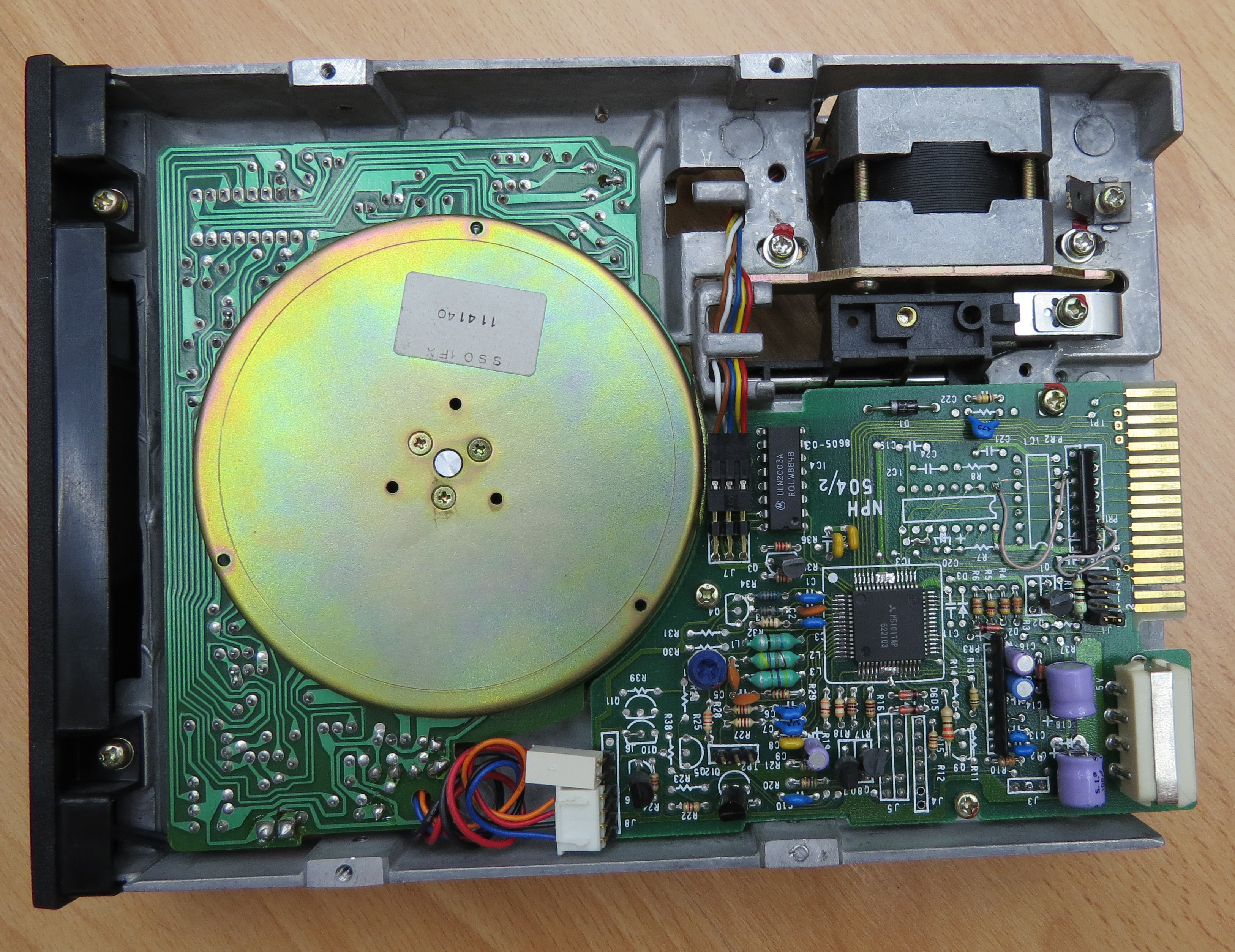 А если серьезно, все у тебя исправно. В стандарте Шугарта за HD/DD отвечает вторая нога индексного кабеля (первая верхняя). На плате рядом с ней еще цифра два стоит на фото. Надо плату аккуратно отвинтить и посмотреть с обратной стороны куда идет дорожка. В спектруме этот контакт не используется так как к него урезаный шугарт исторически. Тебе надо на нее подать какое-то напряжение. Дисковод скорее всего уже переключен на 300 оборотов, а вот диск не читает, так как на этой ноге у тебя 0в. Посмотри как я решил эту проблему на дисководе без джамперов.