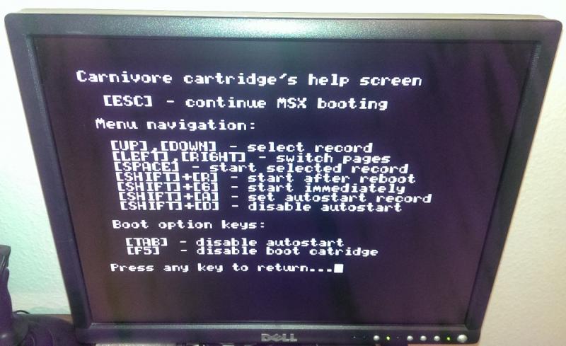 Бутблок и утилита-прошивальщик почти закончены - добавлен автодетект мапперов, verbose mode (для тех кто любит технические подробности), Super User mode для редактирования всех регистров (кто не рискует, тот не играет в MSX игры), полностью автоматический режим работы (когда пользователя ничего не спрашивают). Бутблок и сама утилита "причёсаны" и идёт тестирование. На фотках - основной скрин бутблока и экран помощи.
