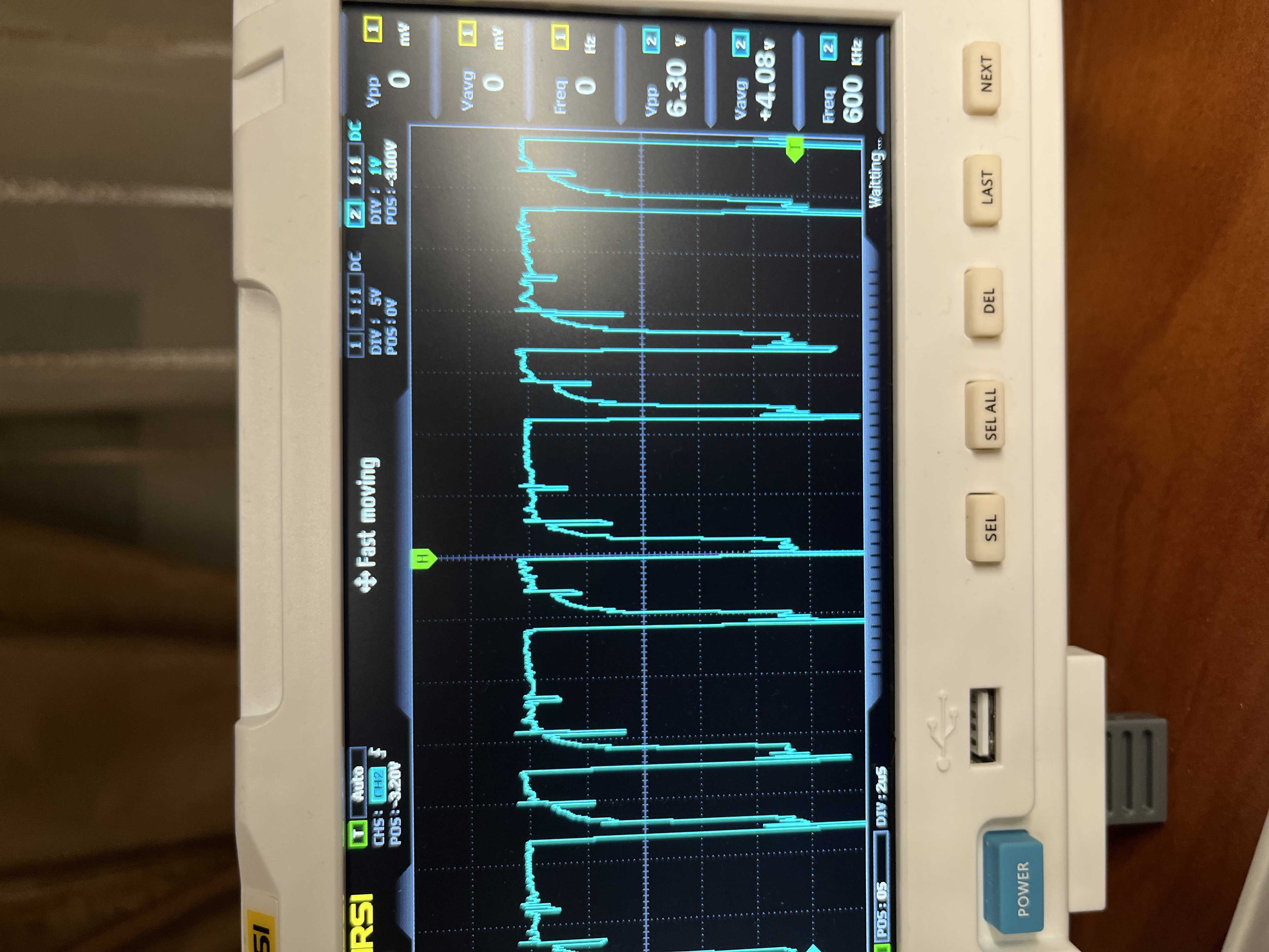 Посмотрел ((( Все норм, 4,96В. Нигде не просаживается. А не могли бы Вы посмотреть у себя те же клоки атмеги и READY в момент стартовой менюшки ?