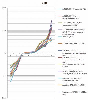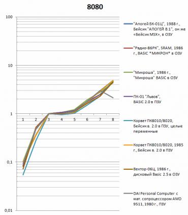 вот результаты, полученные по этой методике (сравнивал бейсики с альтаиром 4К и 8К, а также TRS-80 LEVEL1):