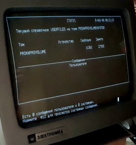 1. Нет, здесь мухи отдельно, ПРОС отдельно. Чтобы использовать разные операционные системы, приходится менять винчестеры. У меня на одном ПРОС и на другом RT-11XM 05.04. (Только MS-DOS [в режиме эмуляции] можно держать второй системой хоть на винчестере с ПРОС, хоть на винчестере с RT-11).