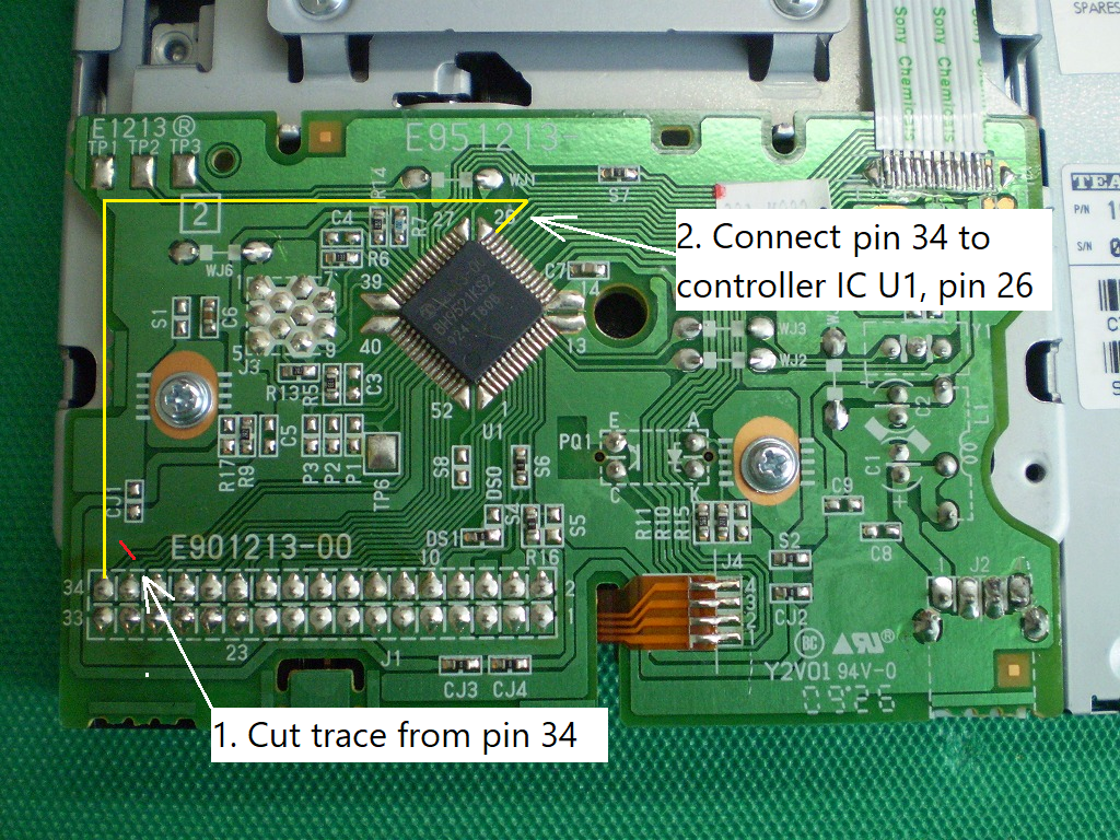 Из дисководов под рукой был только TEAC FD-235HG. Пришлось его немного порезать , чтобы получить сигнал READY на пине 34 вместо DISK CHANGE.