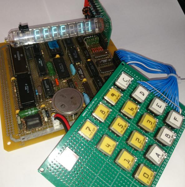 Наконец осуществил мечту 30-летней давности – собрал процессорный модуль ЮТ-88) Поводом стала случайно нашедшая у родителей дома коробка, из под чертежного набора, где сохранился комплект с большинством микросхем для сборки, включая и редкие сейчас РП1. Они и пошли в дело. Сразу решил вместо индикаторов АЛС324 поставить, давно валявшуюся ВЛ трубку ИВ-18. Показалось как то более, винтажно и красиво. Из за отсутствия опыта, с ее подключением, и провозился больше недели. Саму плату собрал быстро, причем и компьютер заработал сразу, просто неверные показания индикатора сбили с толку.