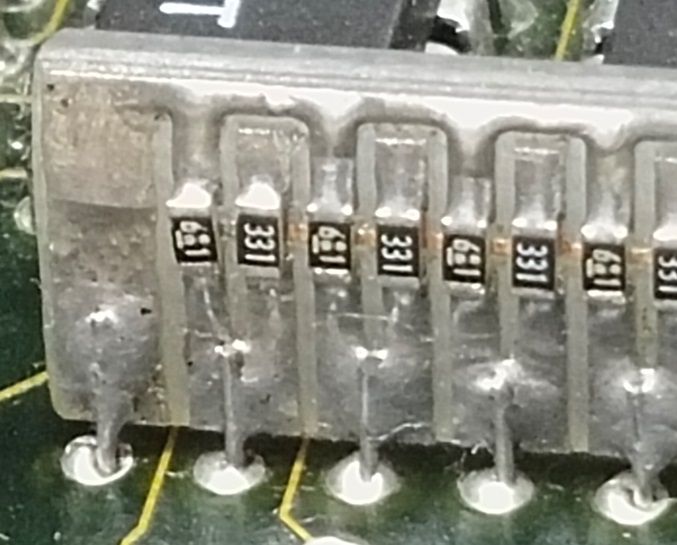 Визуально все цело, кроме одной резисторной сборки 13-18110, одной из 4-х что на qbus сидят. Ее просто разбили впополам :(