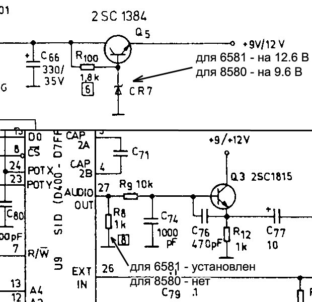 Если оно действительно на 8580 расчитано, то, судя то комментам в схеме, придется поменять одну детальку (стабилитрон) и добавить один резистор, и можно будет ставить 6581.
