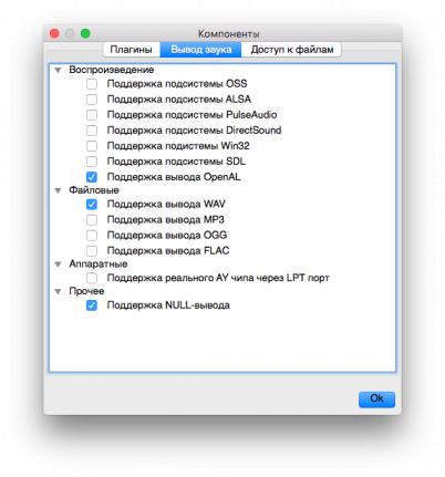 Эта версия является макетом приложения. Сразу после старта мы видим сообщение "Ошибка открытия файла '/-psn_0_204850' в строке состояния. Компоненты > Вывод звука > Воспроизведение галка только на "Поддержка вывода OpenAL", отсутствует Core Audio, отсутствует даже SDL. Т.е. звук выводить эта сборка не может, в принципе. На Компоненты > Доступ к файлам галка только на 'Поддержка доступа к локальным файлам и схемы file://'. Так вот локальные файлы оно тоже открыть не может, о чем и сообщает еще на запуске. При этом проблем с правами у приложения быть не должно: находясь в одной директории с открываемым файлом и имея 777 на эту директорию, на файл и на само приложение. Происходит дело под OS X El Capitan, 10.11.6 (15G31)