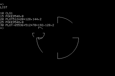 Это еще не все. Похоже сами авторы тоже не проверяли свои примеры использования процедуры приведенные в журнале. Для правильной работы нужно перед каждым рисованием окружности делать POKE9548,0.