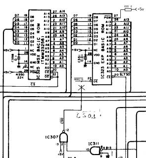 1) Надо подрезать проводник, ведущий от вывода 12 IC307 (сигнал /CS0,1) к входу /OE ПЗУ SUB ROM (IC323 вывод 22);
