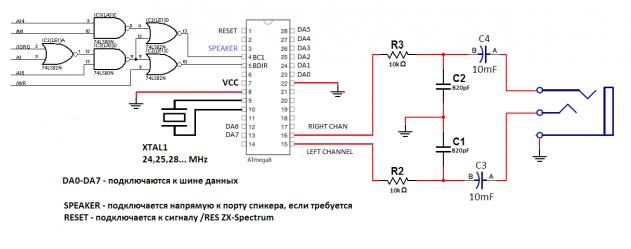 Для 115 циклов, чтобы всё успевало отрабатывать (имеется в виду прерывания по приходу регистров) рекомендуется использовать для конфига 1.75МГц кварц от 27МГц (122 цикла), для 2МГц конфига от 30МГц (119 циклов). Но, практика показывает, что даже для версии 24.2 (132 цикла) вполне приемлемое звучание дает кварц 24МГц.