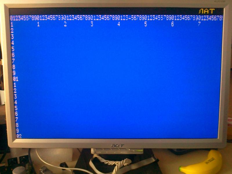 Теперь о кадровой разверткеНа экране должно быть 24 текстовых строки (288 растровых), но две последних текстовых не влезают. Опять же, это может быть бзик моего монитора.