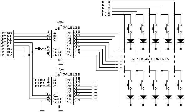 Вобщем получается обычная клавишная матрица , для тестов можно как раз какуюнить попсовую клавиатуру подцепить .