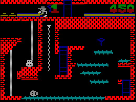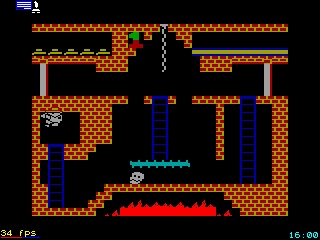 3. БАГ - в самом начале когда пошел вправо ( открыв всего 1 белую дверь) потом мимо змей и вниз за синим ключем, Монти запрыгивает на кирпичи экрана выше и по ним прыжками можно выскочить.Такого не было в оригинале.