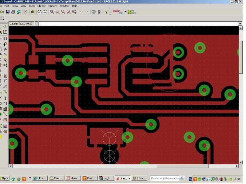 tnt23, Качайте При экспорте чего? Если в гербер то там все впорядке. Изначально подумал что дорожка должна быть с другой стороны платы, хотя может так и есть, но у дорожки связь с GND....