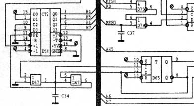 Если предположить (хотя по схеме должно быть 312 строк), что строк 320, то деление (двоичное) не получается: 72384/320=226,2 – так делить двоичный счетчик не может. Невозможно и 228 тактов в строке при 72384 такта на экран: 72384/228=317,473684… Поэтому 232 такта на строку наиболее вероятны. Это не очень хорошо, поскольку не совпадает ни с одним стандартом (ни фирменным, ни «Пентагон»-овским).