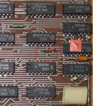 У меня в наличии две отсканированные схемы «ZX-777» и одна в псевдографике. Конденсатор С34 обозначен только на одной из отсканированных схем (предоставил Costa). Фрагмент с конденсатором публикую, кроме того, прилагаю фото платы, где C34 обведен красным кружком (что бы было понятно его расположение). Схему если необходимо вышлю электропочтой (укажите адрес в ЛС). ]