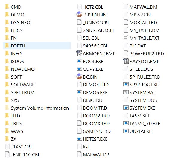 вот у тебя там на скриншоте папка wav имеется. засунь туда сколько-нибудь ваф файлов. хоть каких. моно, стерео, 8бит. 16бит, до 48кгц (будут тормозить скорей всего). если флекс настроенный, то или по Ф3 или по энтеру будет играть вафплеер. в папке zx должна быть пускалка режима спектрума. там тоже есть описание и должны быть настройки во флексе. скорей всего по энтеру на трд образе будет пускаться какой-то конфиг спектрума.
