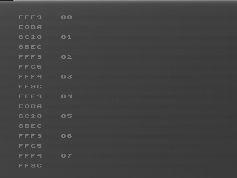 Первая 4-х значная: считанное значение после загрузки 0FFFFh (до этого стоит HLT), а вторая у трёх тестов разная: