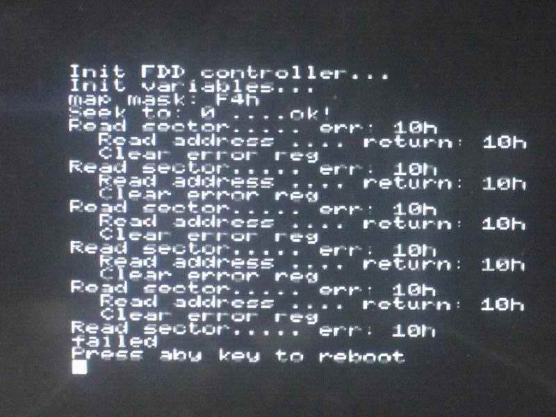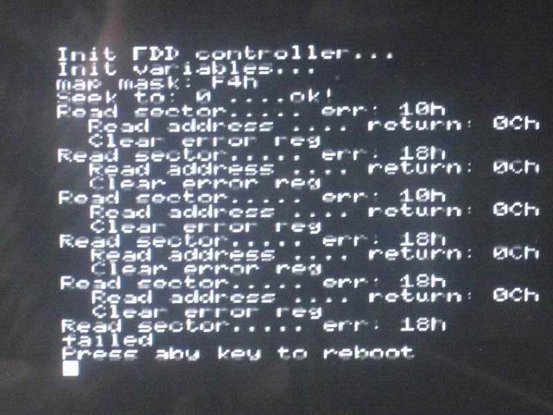 Если дискету не вставлять, то висит бесконечно с надписью Read sector...