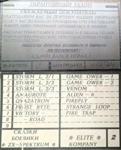 На кассете от "ELITE KOMPANY # 2" отсутствует игра "Fire Trap".