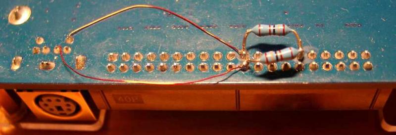 И подключить мышь, достаточно не просто. Кроме подпайки двух подтягивающих резисторов к GPIO1 DE1, требуестся еще и Y-cable.