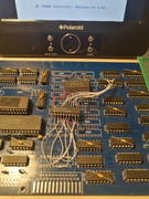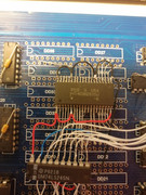 Провел эксперимент по замене РУшек. Использовал микросхему mt4c16257 (валялась в закромах, кажись от видеокарты). Схему не привожу, т.к. все просто и по фото понятно. Кратко: выводы старшего и младшего байта подключены параллельно, А8 и /OE заведены на "землю", к /CASH и /CASL подключены С37 и С38, для развязки входов-выходов использован буфер АП6/245.