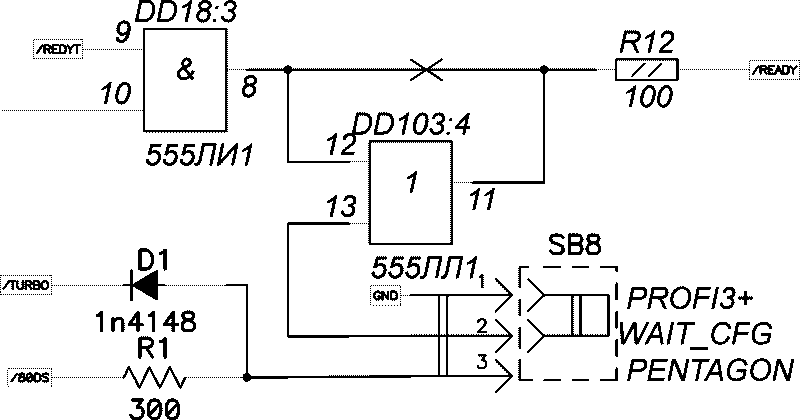 3. Для верхней платы 5.03: Выпаяйте резистор R15 на верхней плате, соедините 2 и 3 выводы м/схемы DD45 с сигналом 80DS (не инверсный) 15 вывод DD46 нижней платы.
