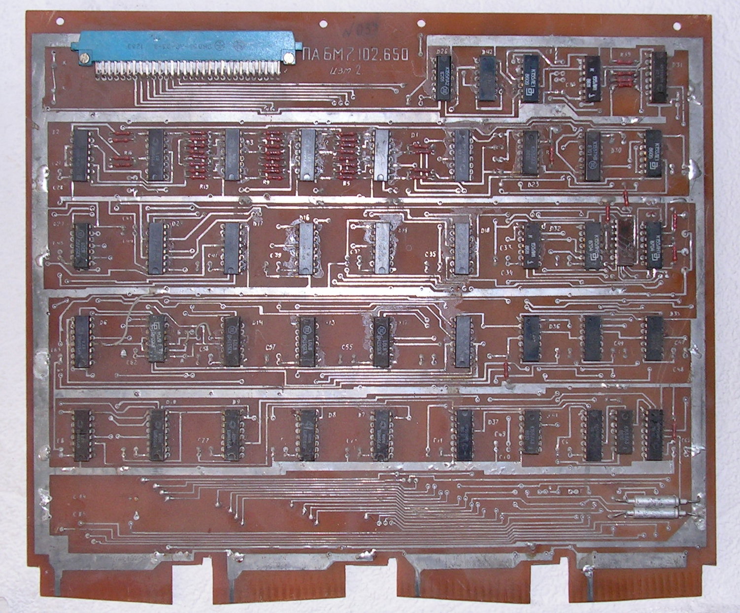Еще одна плата - судя по надписи ред3 - это штатная плата а судя по мк 1802 - контроллер либо НМЛ либо Графического дисплея - можно попытаься востановить , но сложновато - уж очень покурочен