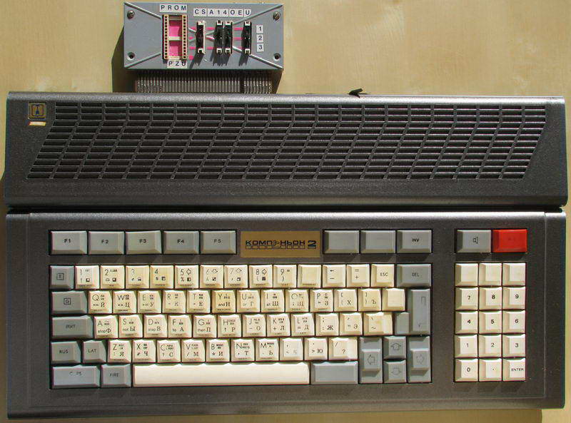 К компаньону можно подключить картриджи с играми/программами. Из себя картридж представляет коробочку с микросхемой УФПЗУ. По схеме подключения один в один как программатор. На клавиатуре есть кнопочка (около ресета) NMI. В ПЗУ по адресу 102 находится программа по обработке NMI (да-да, тут ижевцы её сделали) которая загружает и запускает программу из ПЗУ. мс с программой вставляется именно в эту же панельку в программаторе и загружается через NMI.