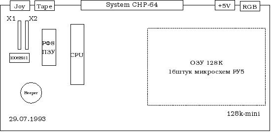 Корпус очень похож на Дельту-С. Но ни единой надписи на нем нет (очень странно?!). Внутри находятся расширенная клавиатура, соединенная с платой двумя ленточными прозрачными шлейфами (типа тех, что используются для подсоелдинения головок в принтерах, только шире). Теперь описание платы: