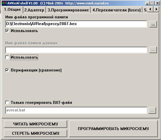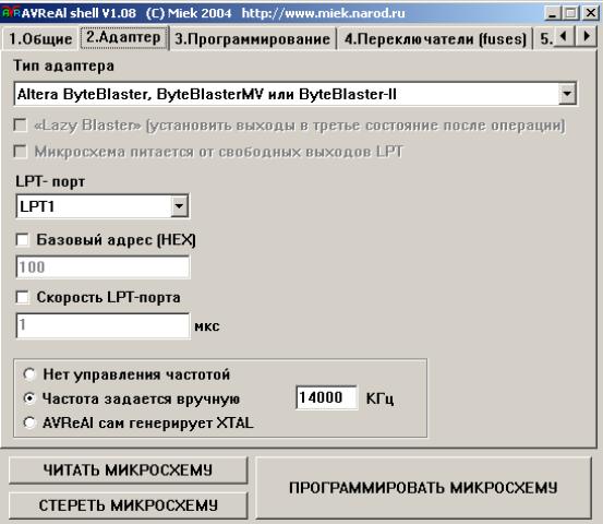 Не забываем на вкладке 2 "Адаптер" указать КАК мы прошиваем, а на вкладке 3 "Программирование" ЧТО прошиваем.