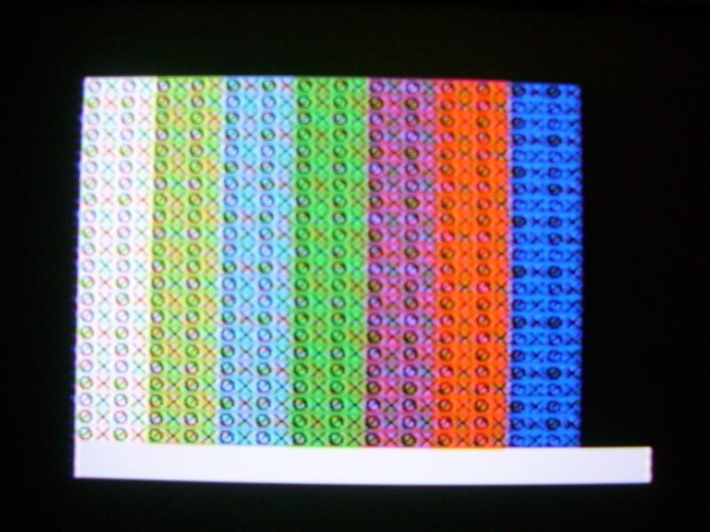 ОК, не страшно-при случае сделаешь... ИМХО - конденсатор на 10-й ноге РТ'шки вещь лишняя, снять нафик! Насколько видно на фотках, после доработки появилась проблема цветопередачи, но пропали искажения типа "диффаза", т.е. цветные "тянучки" от символов по ходу строки. Это говорит о том, что подход правильный, но осталась проблема с фазой "вспышки", которую можно попытаться "полечить" интегрирующей цепочкой из резистора (который замкнут перемычкой) и единственного на плате постоянного конденсатора.