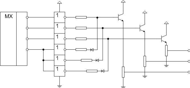 использовать мультиплексор с инверсией на выходе, за ним поставить формирователь КМОП (например, 561ЛН2), за ней смеситель (2х3 резистора и 3 диода), а за ним эмитерные повторители с подстроечными резисторами. Это решит проблемы П.1-П.4.