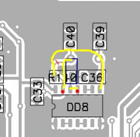 - поднимаем ноги 11, 13 DD8 (обозначены красными точками) в воздух