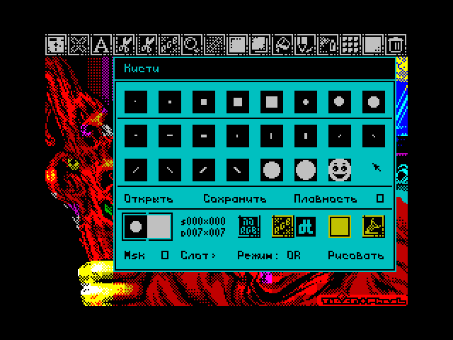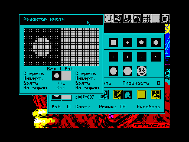 Спрей : Изменяет насыщенность однократно при нажатии файра и неподвижном пятне, и непрерывно при движении пятна.