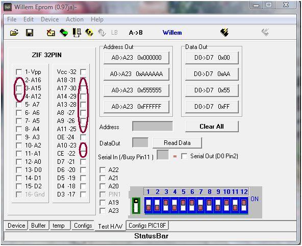 проверил светодиодом на адресах от А8 до А18 вообще не откликается, не знай я все пожег