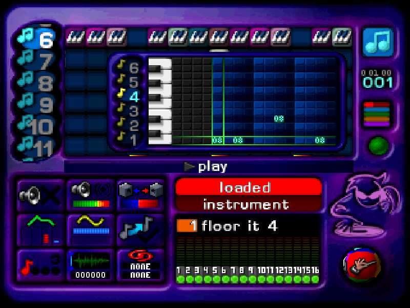 По скриншотам вряд-ли что-то будет понятно. Вот, скрин редактора всей композиции (song_editor). Каждый кубик - это риф (одна клетка = 16 нот). Риф - это одноголосая мелодия (типа одного канала в трекере), может быть набрана любыми инструментами, каждой ноте может быть назначен персональный эффект. См. скрин riff_editor. Конечно, там дофига графики, ориентация на джойстик, и куча упрощений (всё-таки, это для обычных юзеров, а не музыкантов программа), но это всё можно выкинуть, доработать, и переработать. Спек потянет. Кстати, по-моему, был порт этой проги для PC.