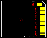 На карточке в один ряд расположено 9 пинов. Крайние пины в ряду - 8 и 9. Их можно оставить как есть, но я всегда их притягиваю к +5v через 10к. Остальные пины разводишь как в схеме.