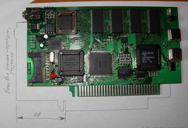 Вот еще один вариант компоновки. Сделал два разъема SD - при необходимость запаивается один из них и два разъема шины. Плата позволяет использовать ее в корпусе ЭВМ и в корпусе G706.