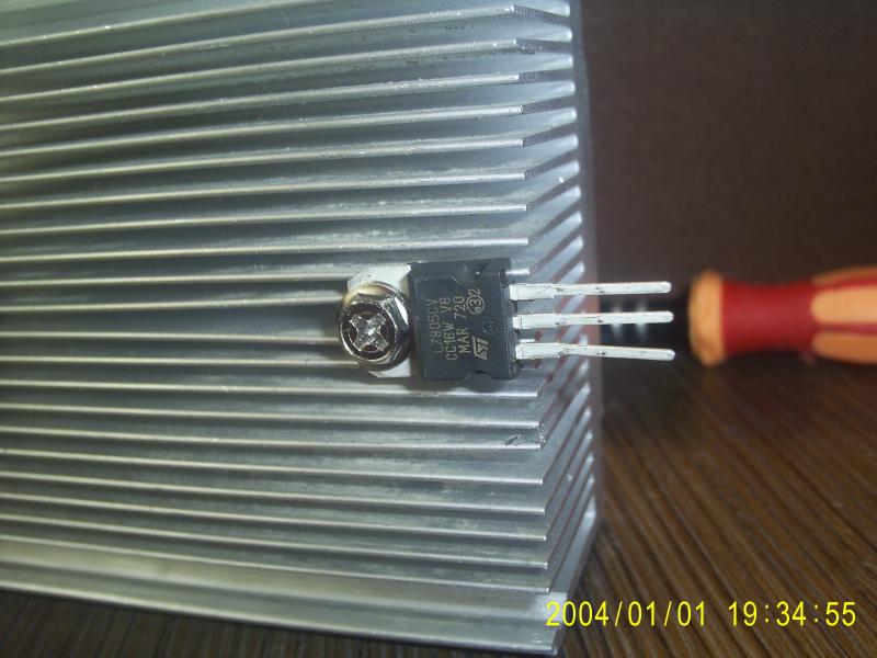 Если уж совсем никак, перекрутите 7805 к плоской стороне ребер (с боку радиатора), а не к закругленной, как на фото.