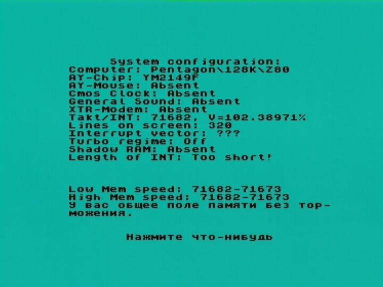 В эмуляторе (режим пентагон) пишет, что поле единое без тормозов