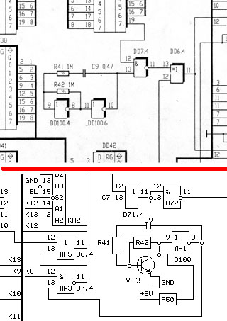 Я сам хз, просто перерисовывал плату. Но сверял со схемой на сайте у КоЕ, и по приведенному выше моменту плата соответствует нижней части картинки (с транзистором).