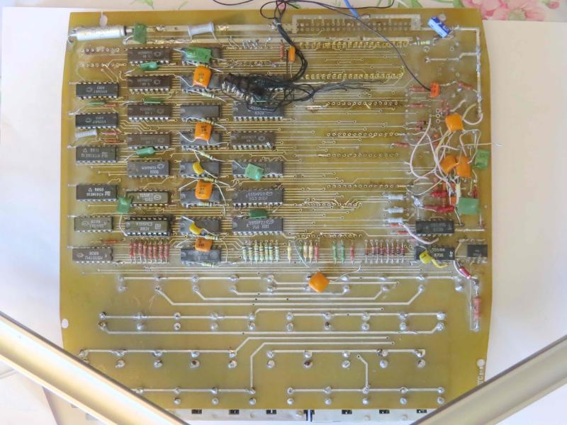 Первая плата ZX целиком с клавиатурой без доработок. На ней не хватает ИР10,РТ4 и РТ5. О процессоре и ППЗУ не говорю. Естественно не включал.
