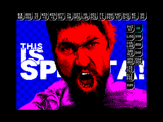 Есть конечно экзотические опции, типа "ротация..." (это скролинг пиксельный и атрибутный, изображения внутри выбранного окна) и т.к. Если что не понятно, спрашивай.