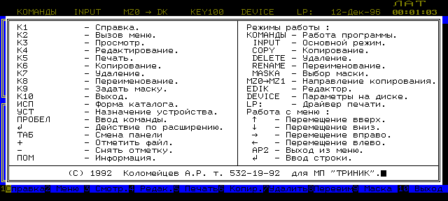 СИСТЕМА - режим ввода команд операционной системы (вызывается нажа-